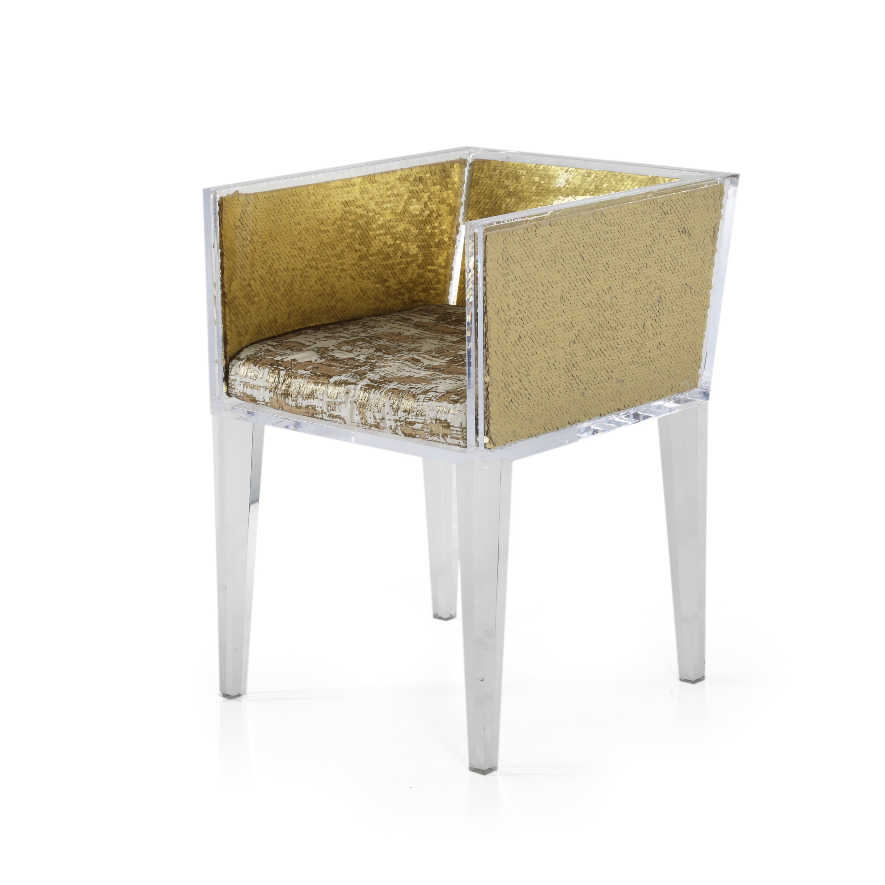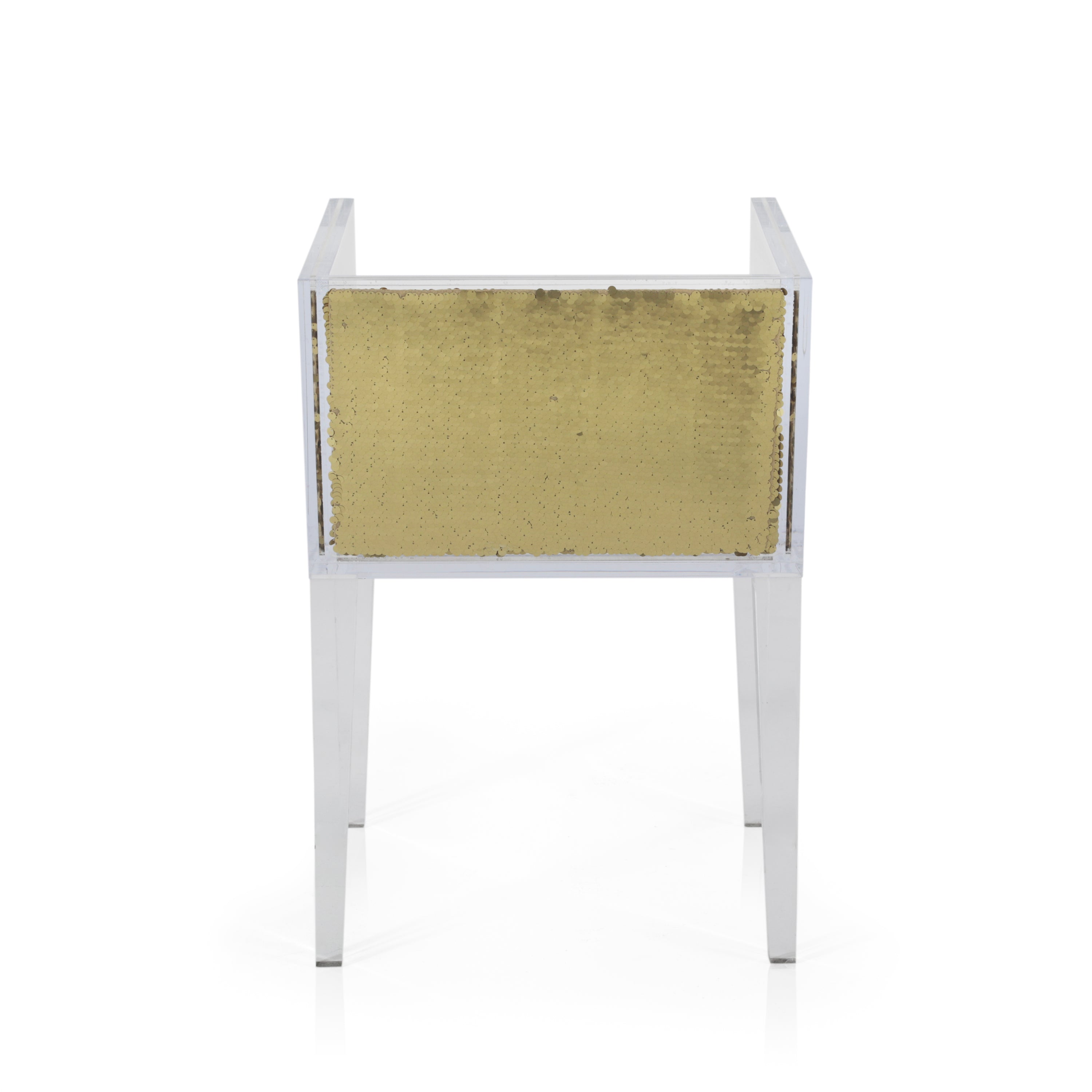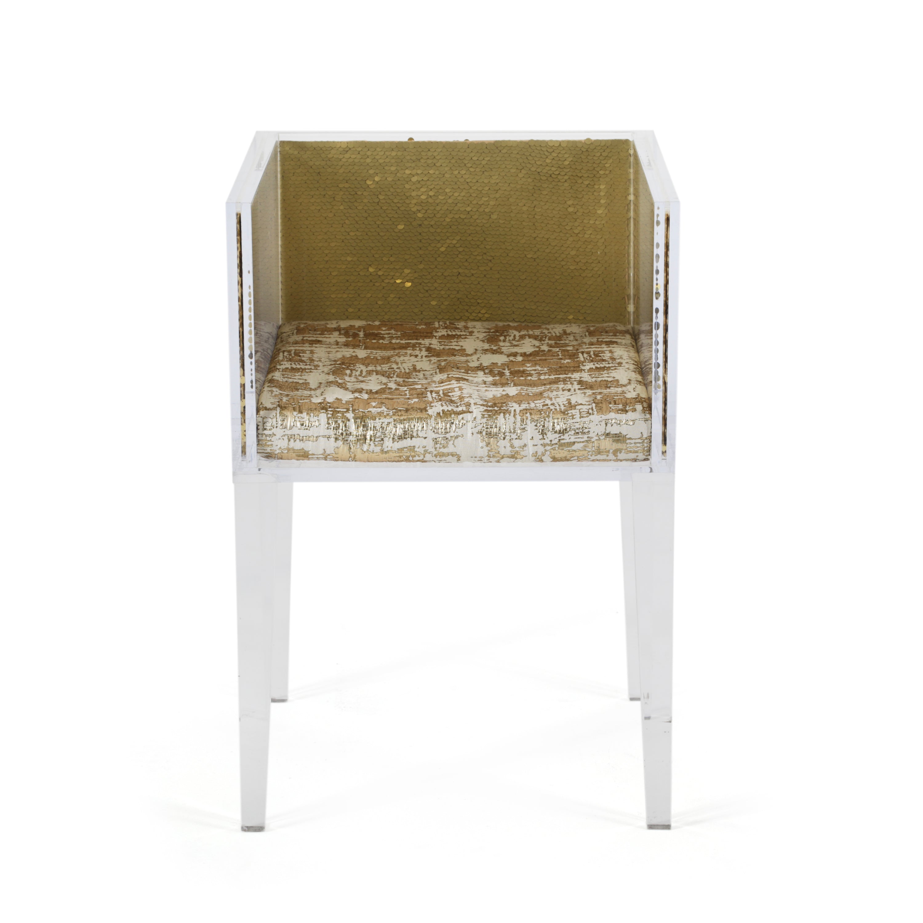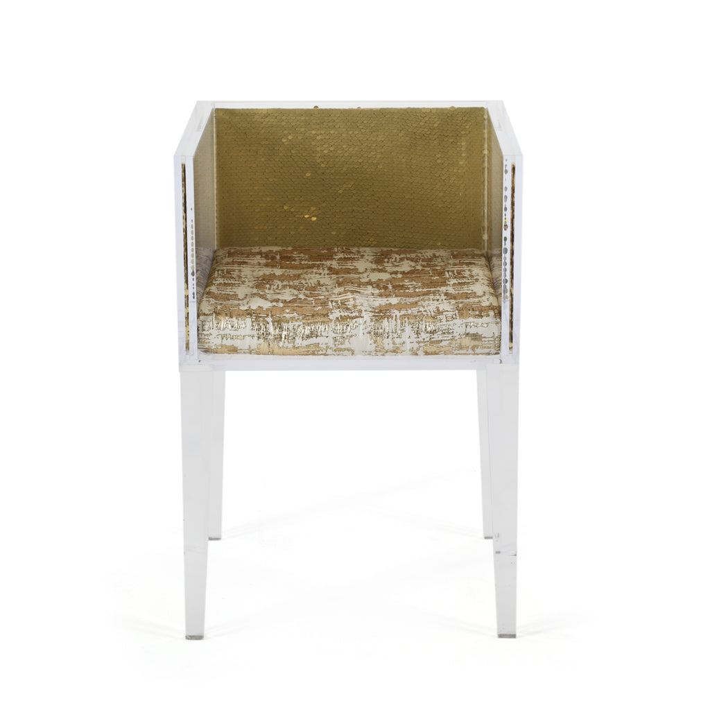 Category: Accent Chair, Acrylic, Arm Chair, Armchair, chair, club chair, Gold, Lucite, Lucite / Acrylic, sequin, Side Chair, White, White / Off-White
