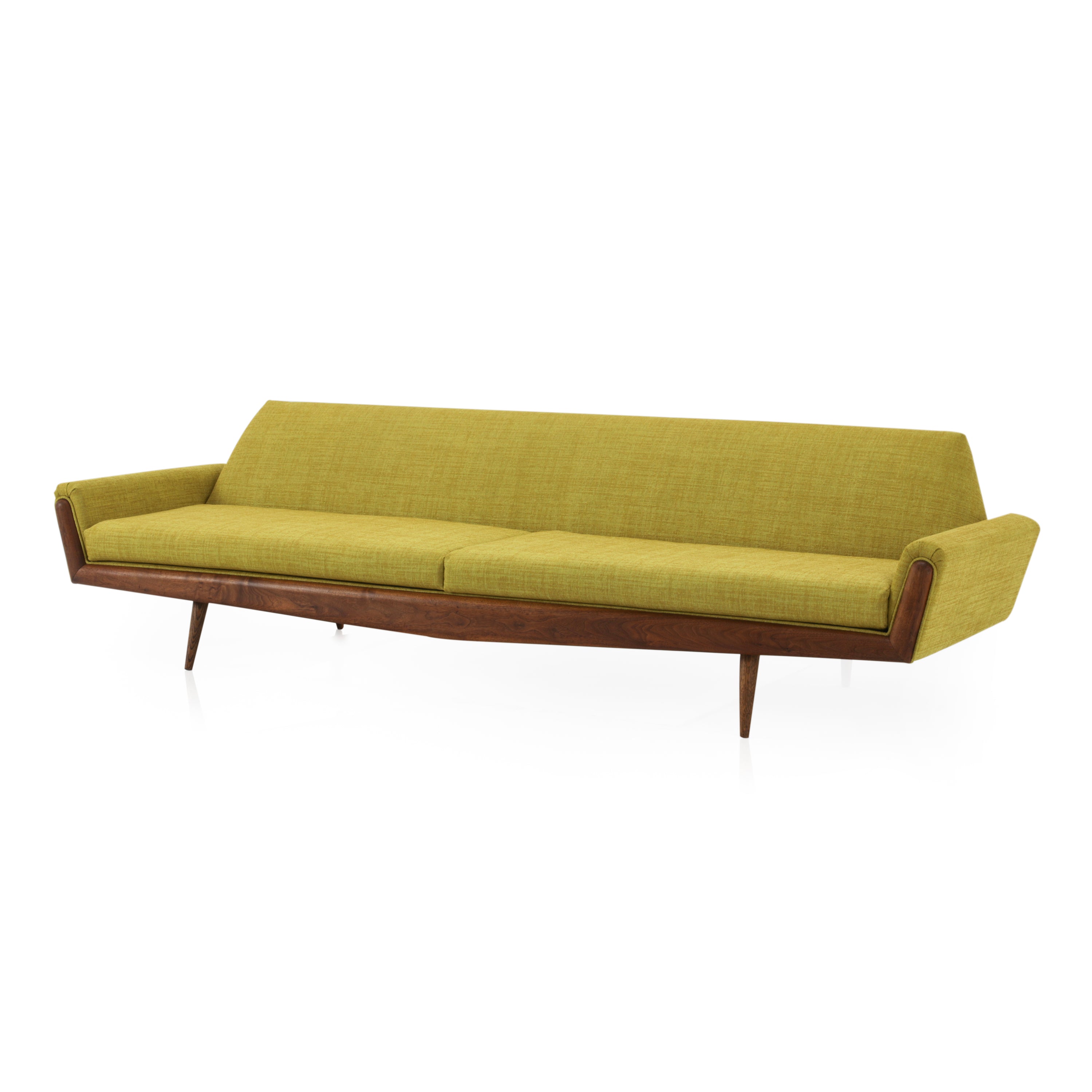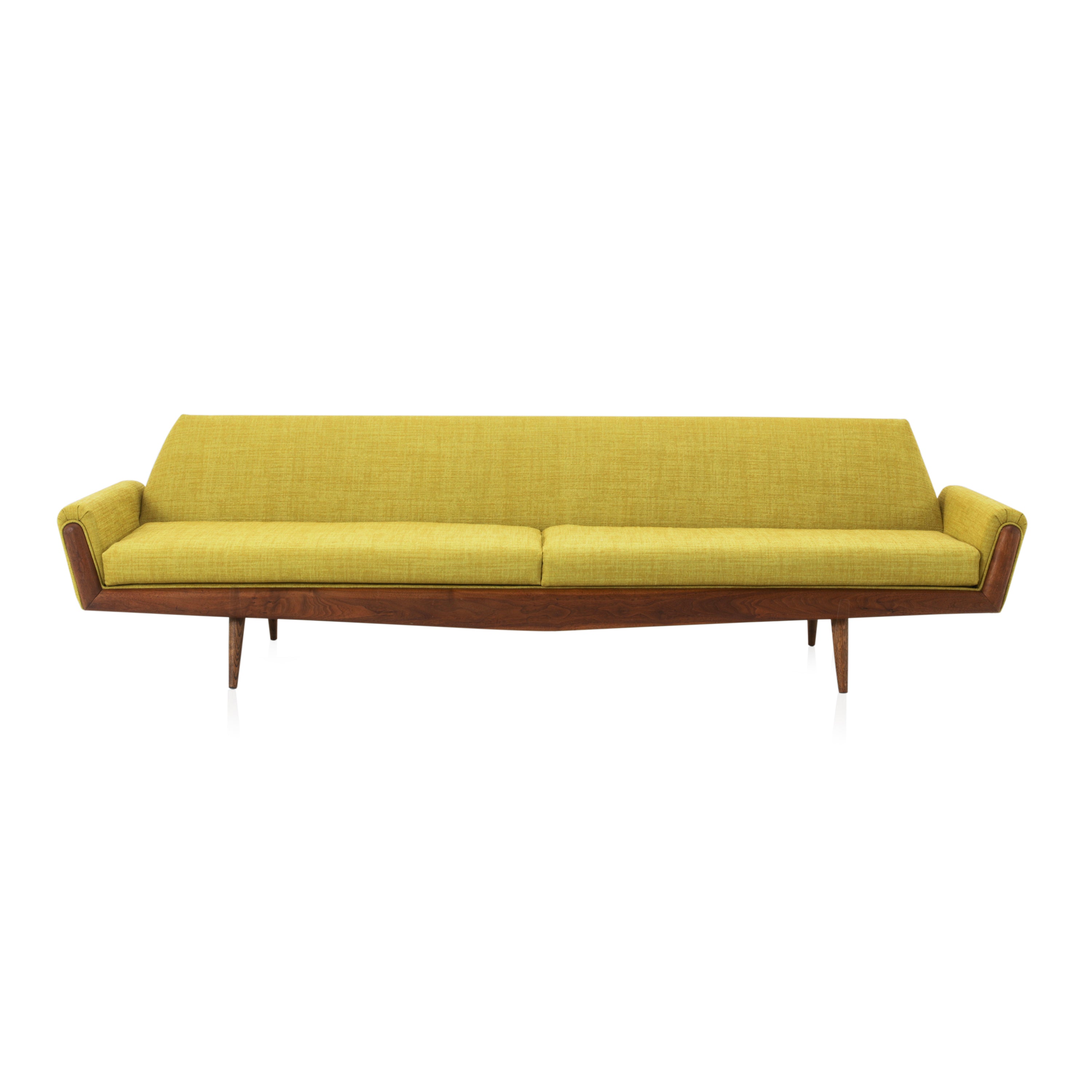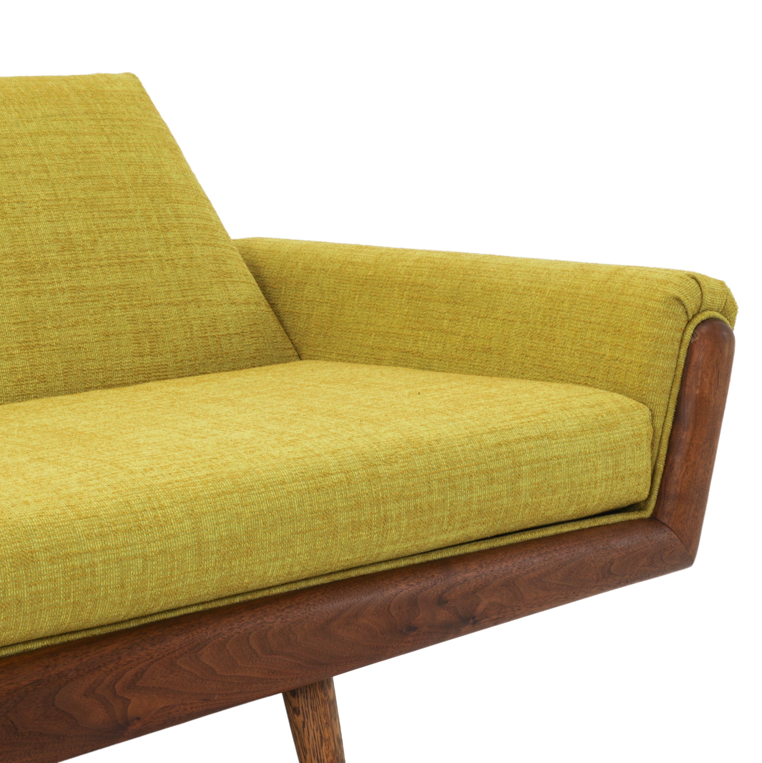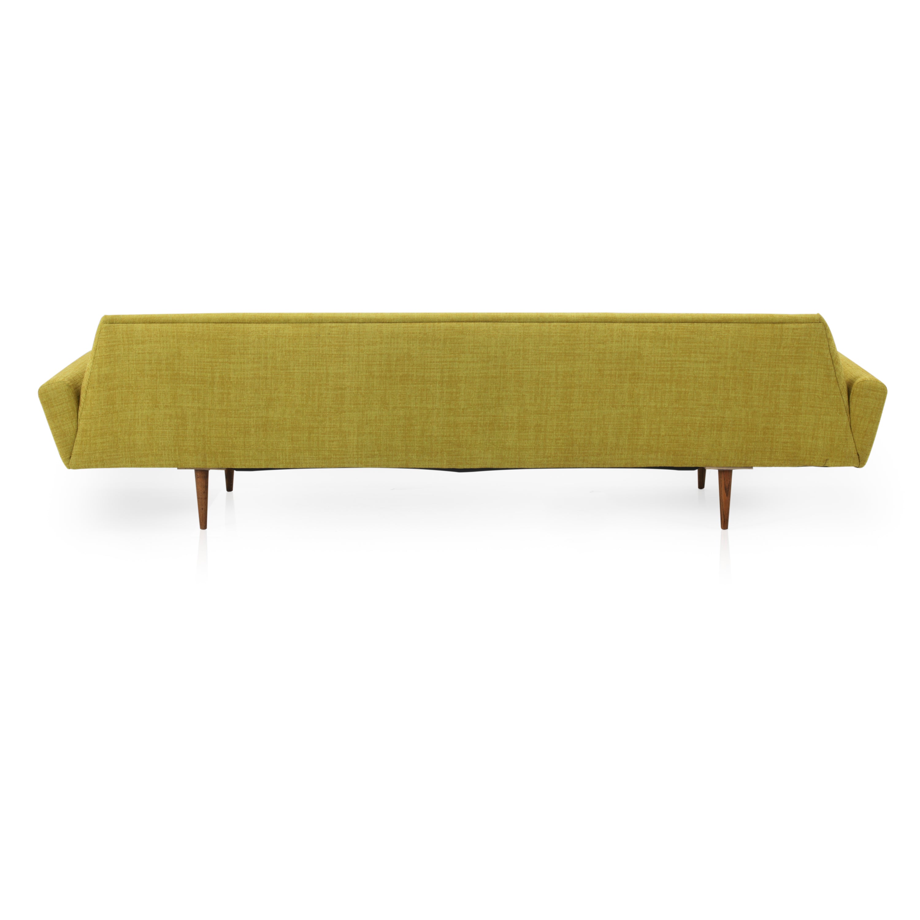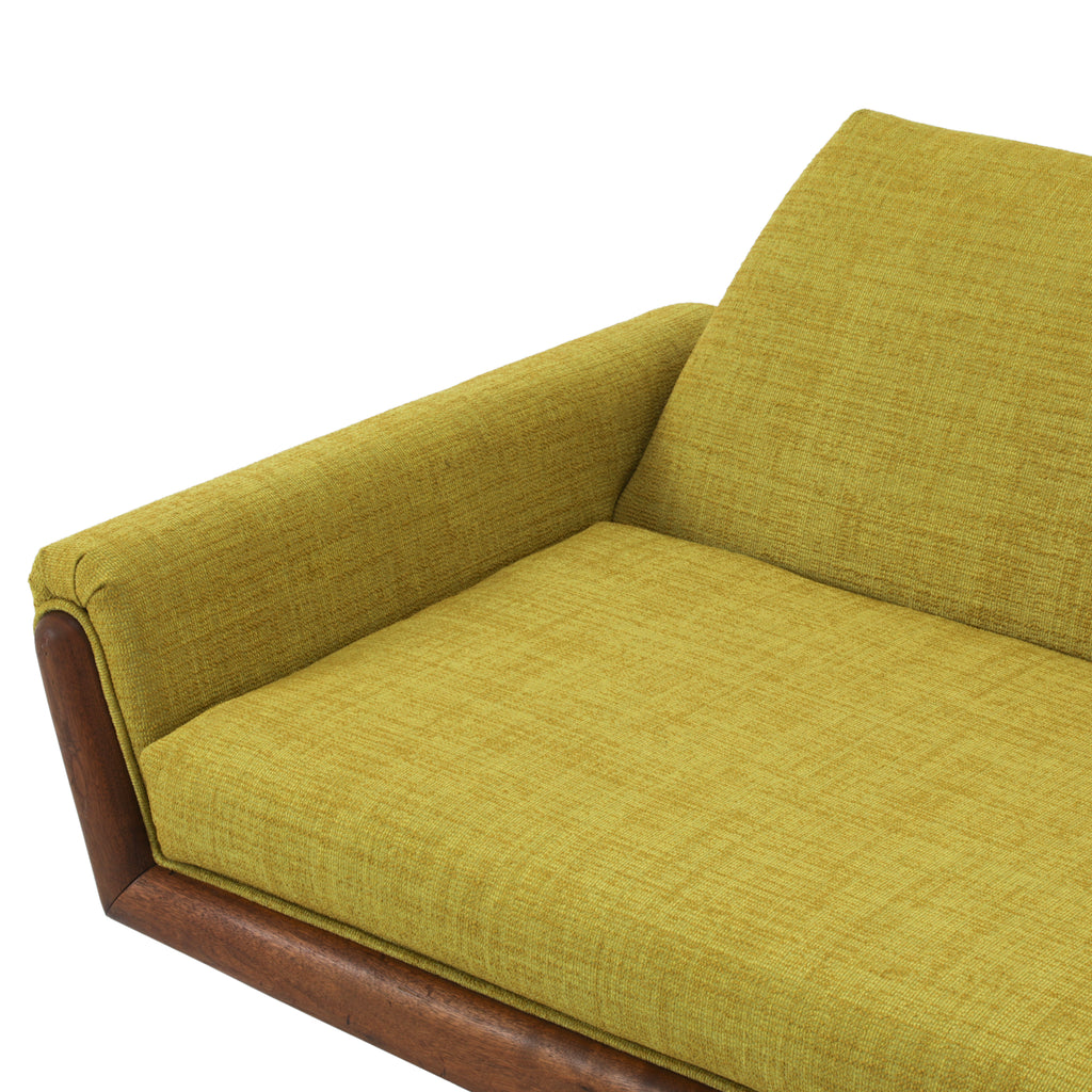 Details: Very Long Yellow Fabric Danish Wood Sofa
