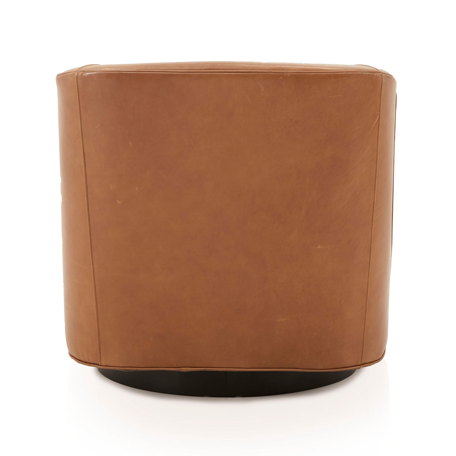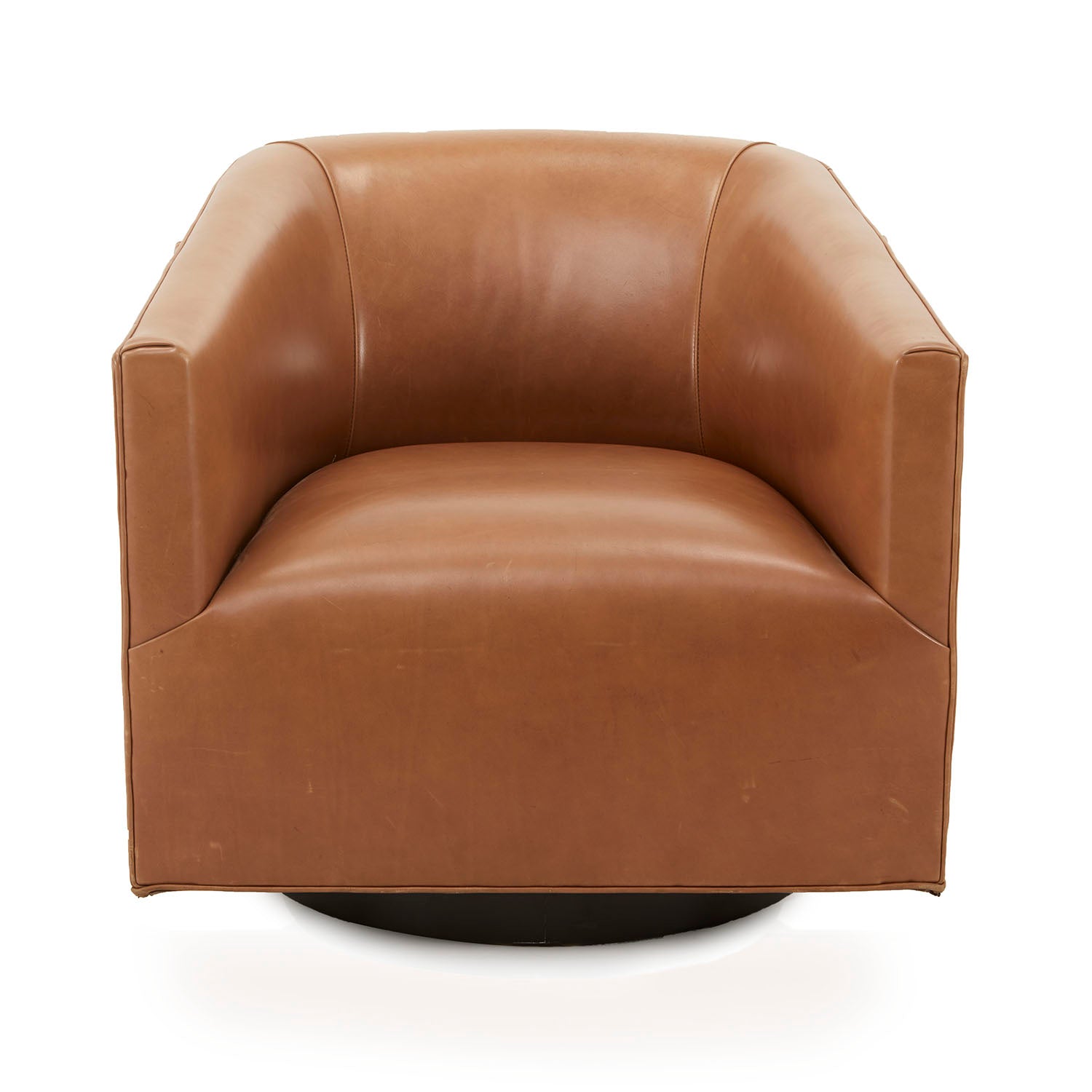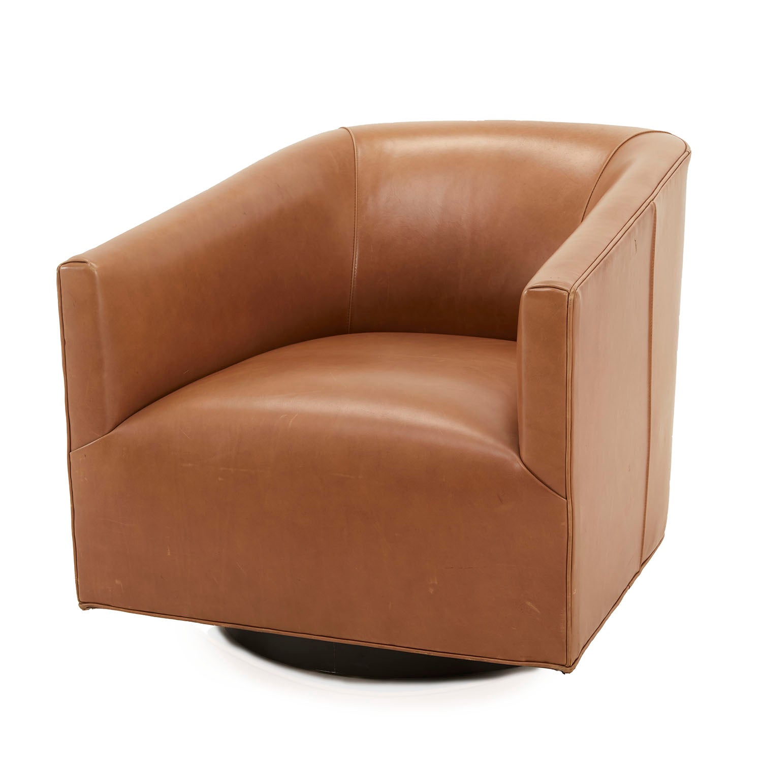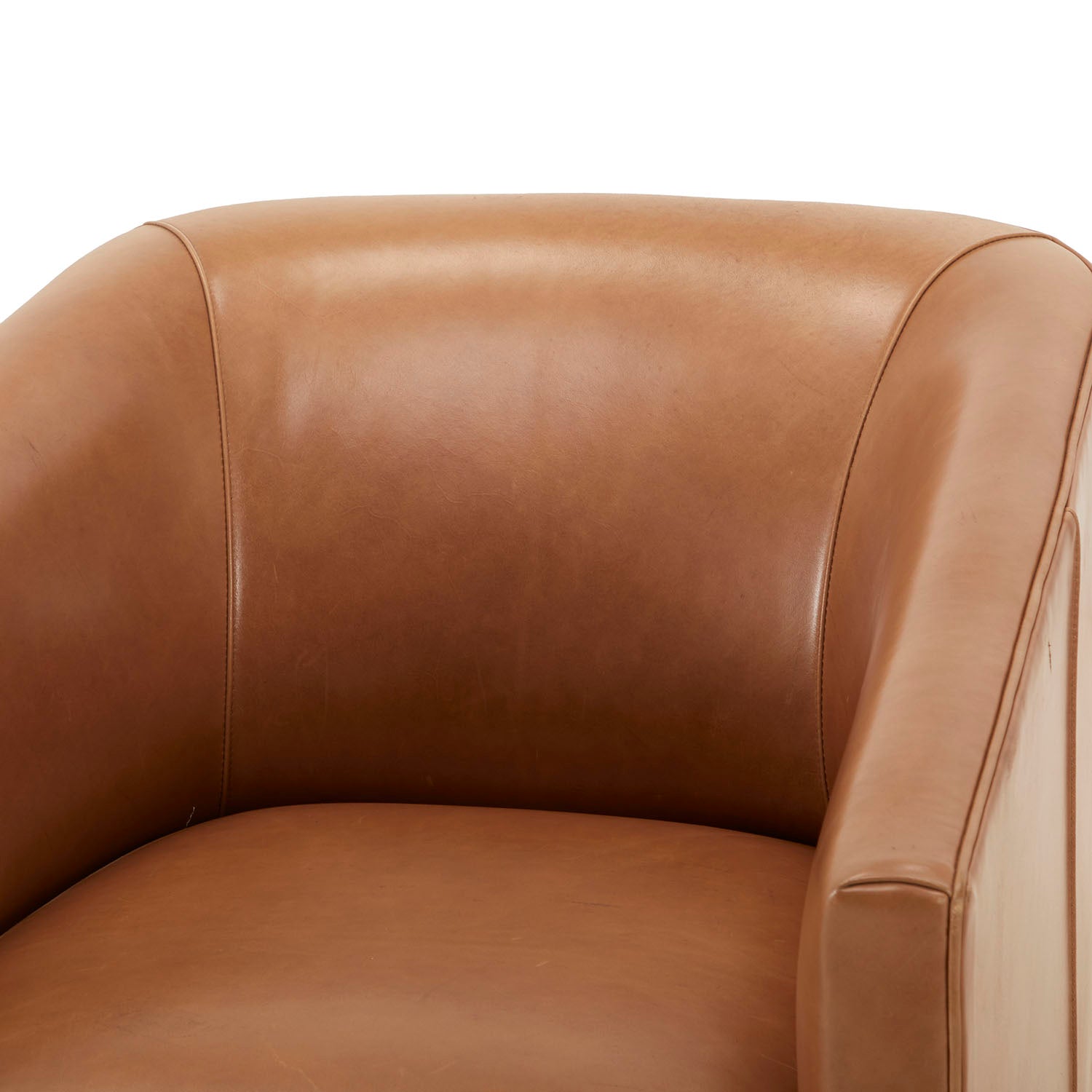 Category: barrel, Beige / Tan, Brown, camel, chair, Leather / Vinyl, Living Room / Den, Lobby / Lounge, lounge chair, Mid Century, Modern, Office (Work), Tan