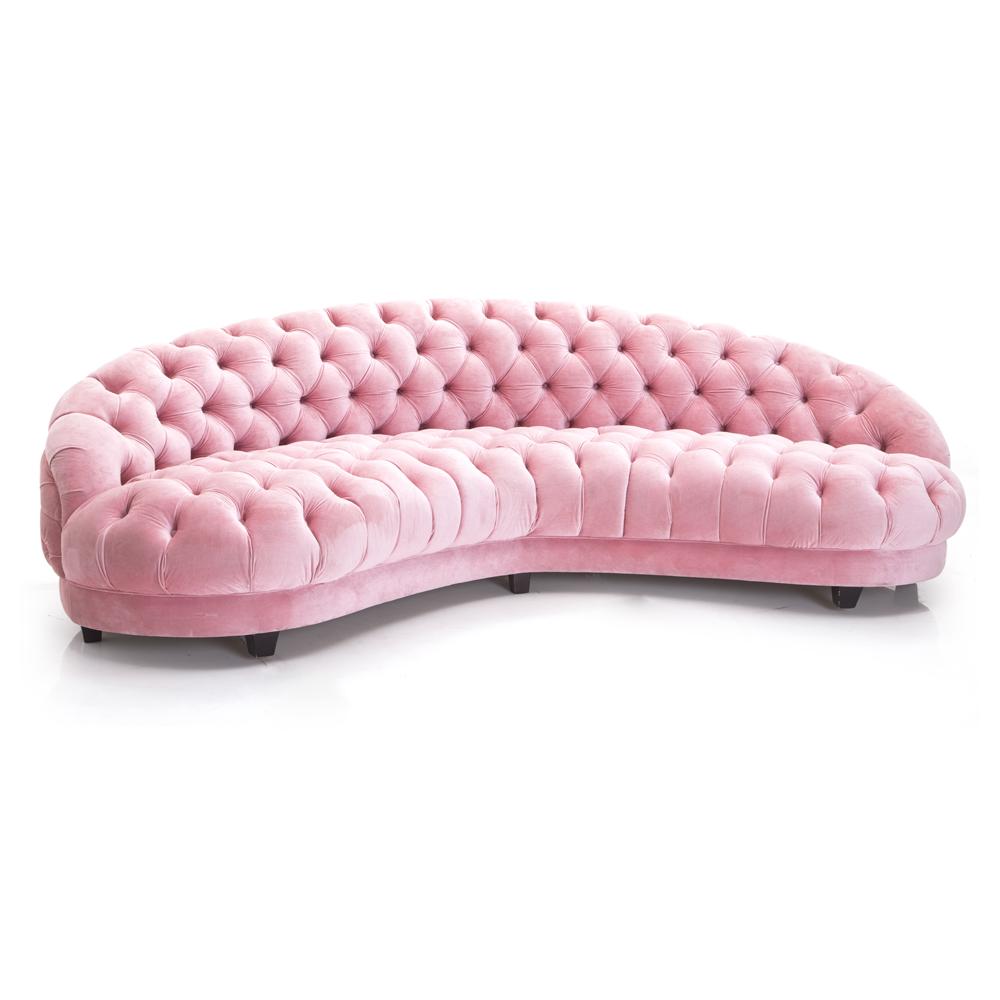 Details: Soft Velvet Millennial Pink Tufted Sofa, Kidney Bean Style.
