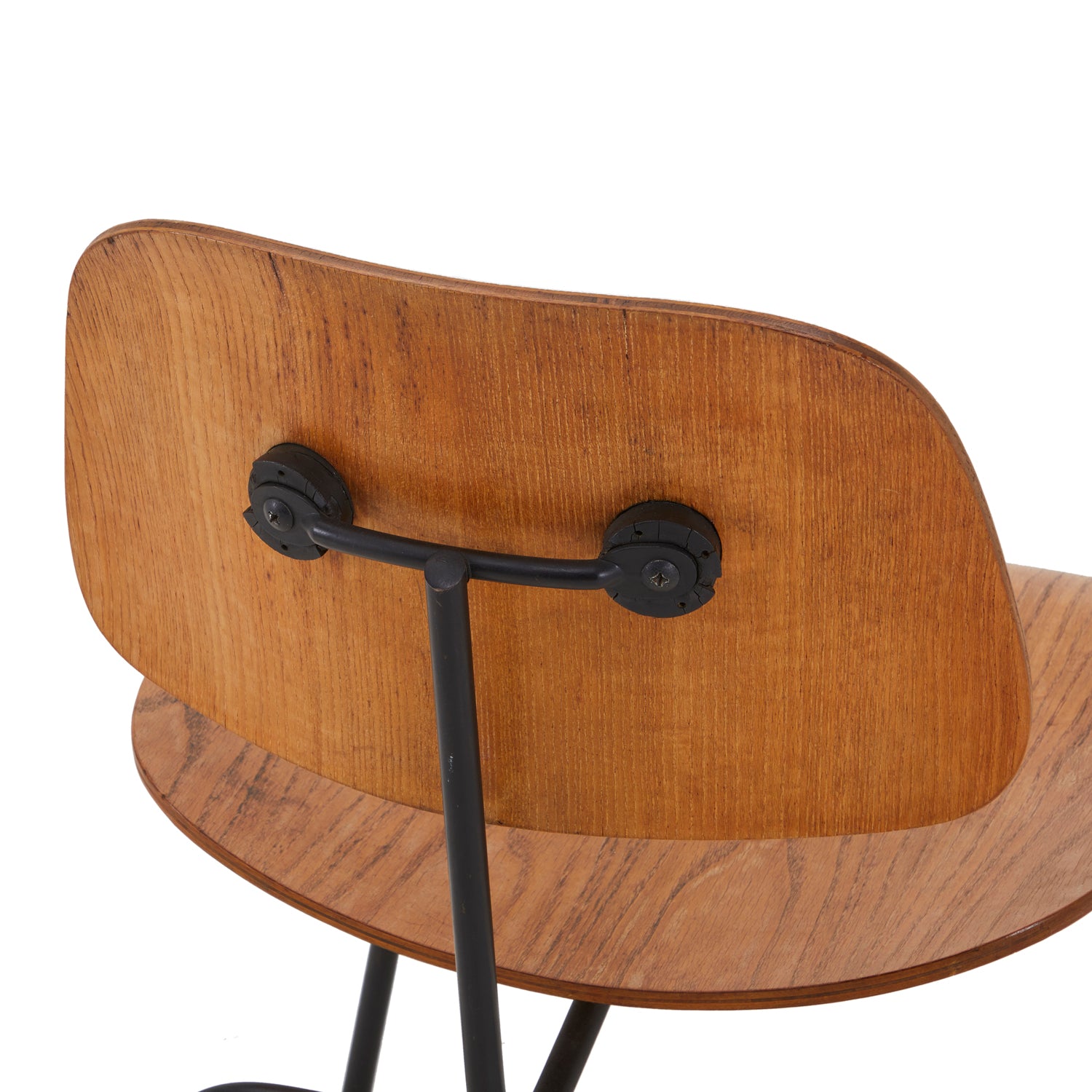 Details: Eames-style molded plywood lounge chair with black metal frame