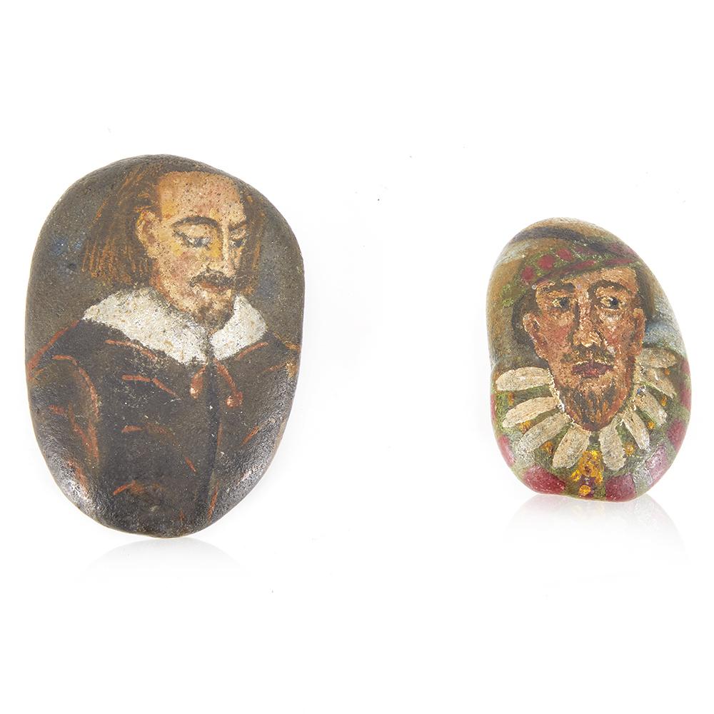 Details: Painted stones with Shakespearean illustrations