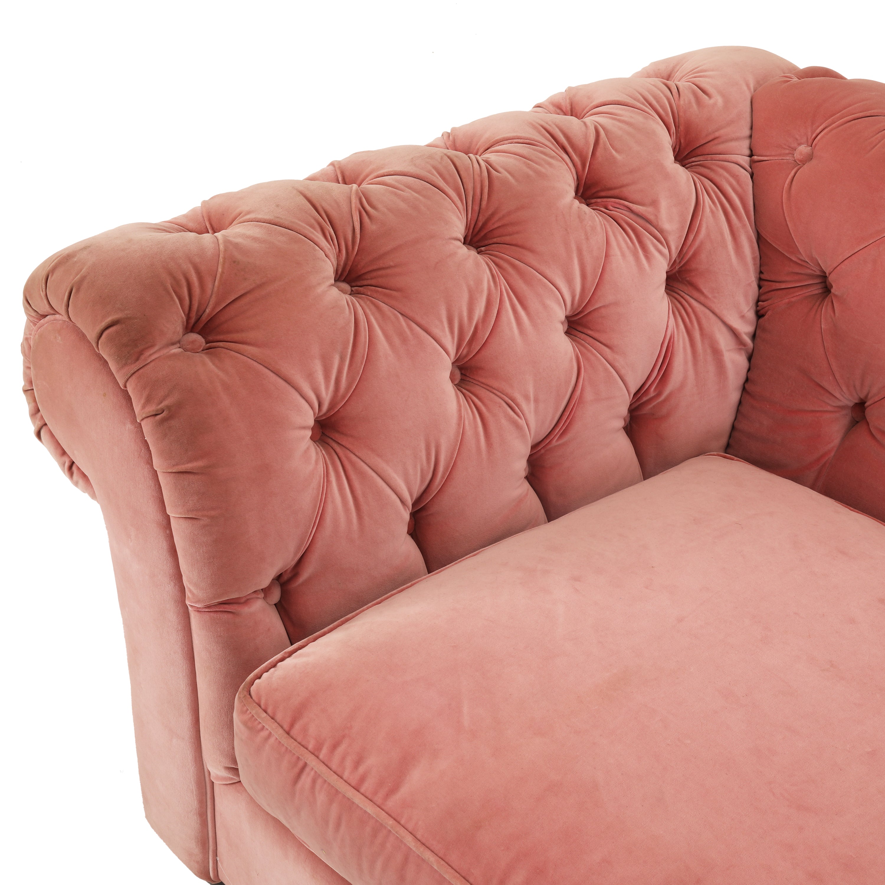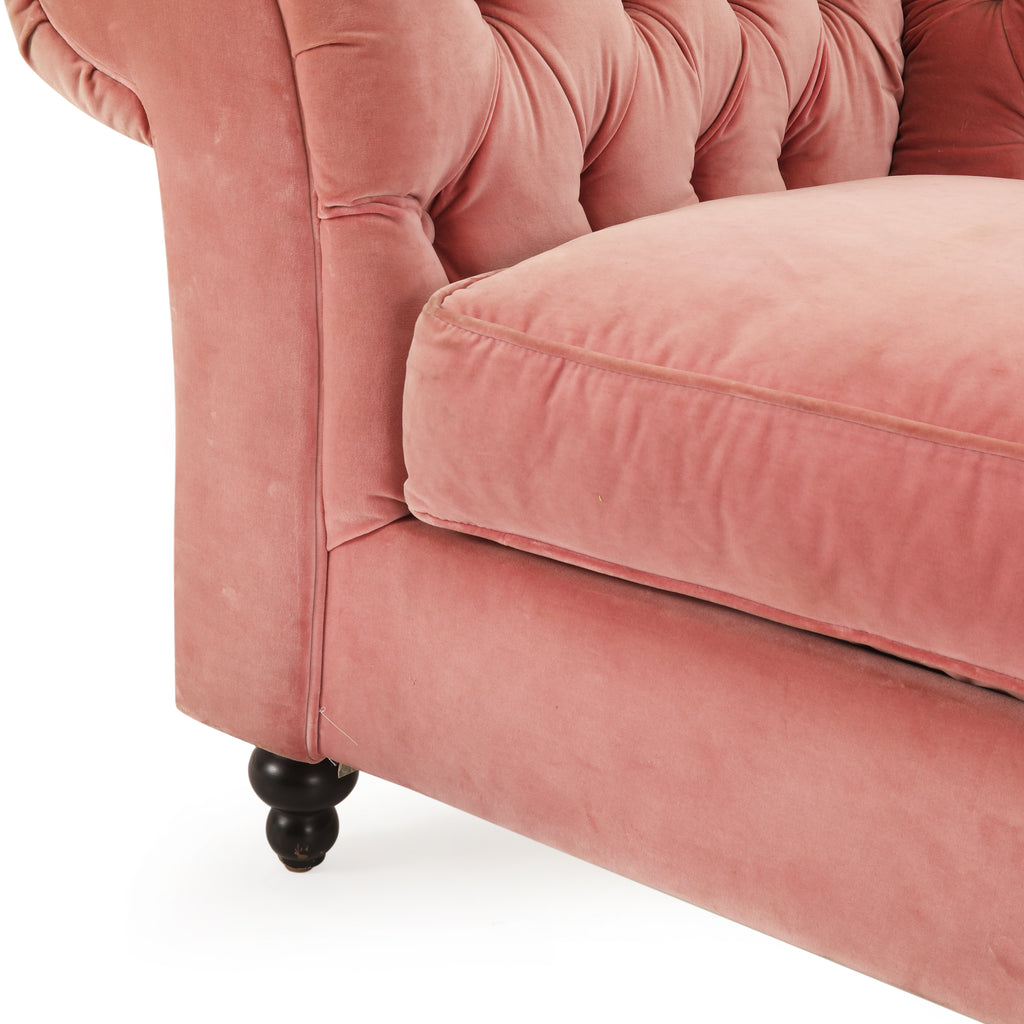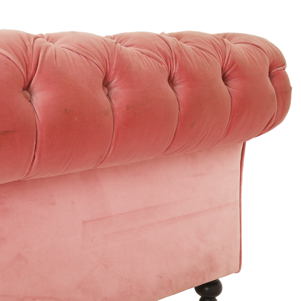 Category: Black wood legs, Couch, Pink, pink velvet, Sofa, tufted, Velvet, Vintage