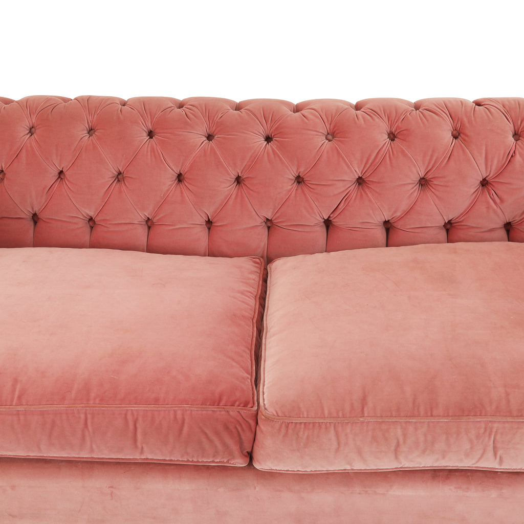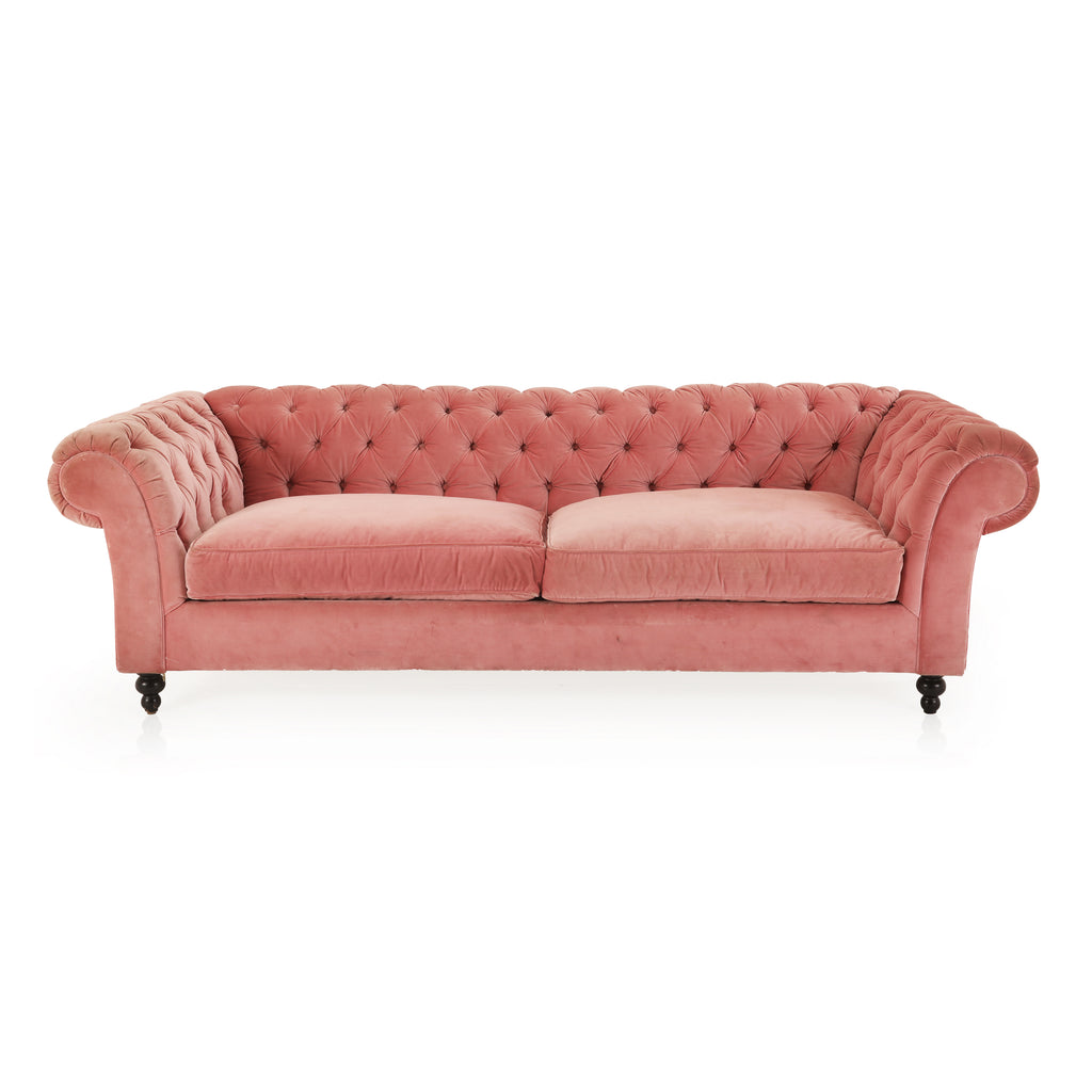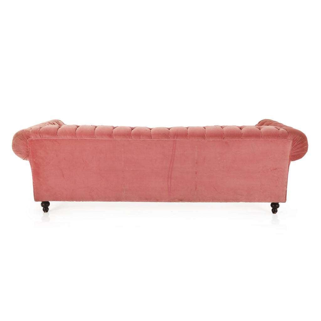 Category: Black wood legs, Couch, Pink, pink velvet, Sofa, tufted, Velvet, Vintage