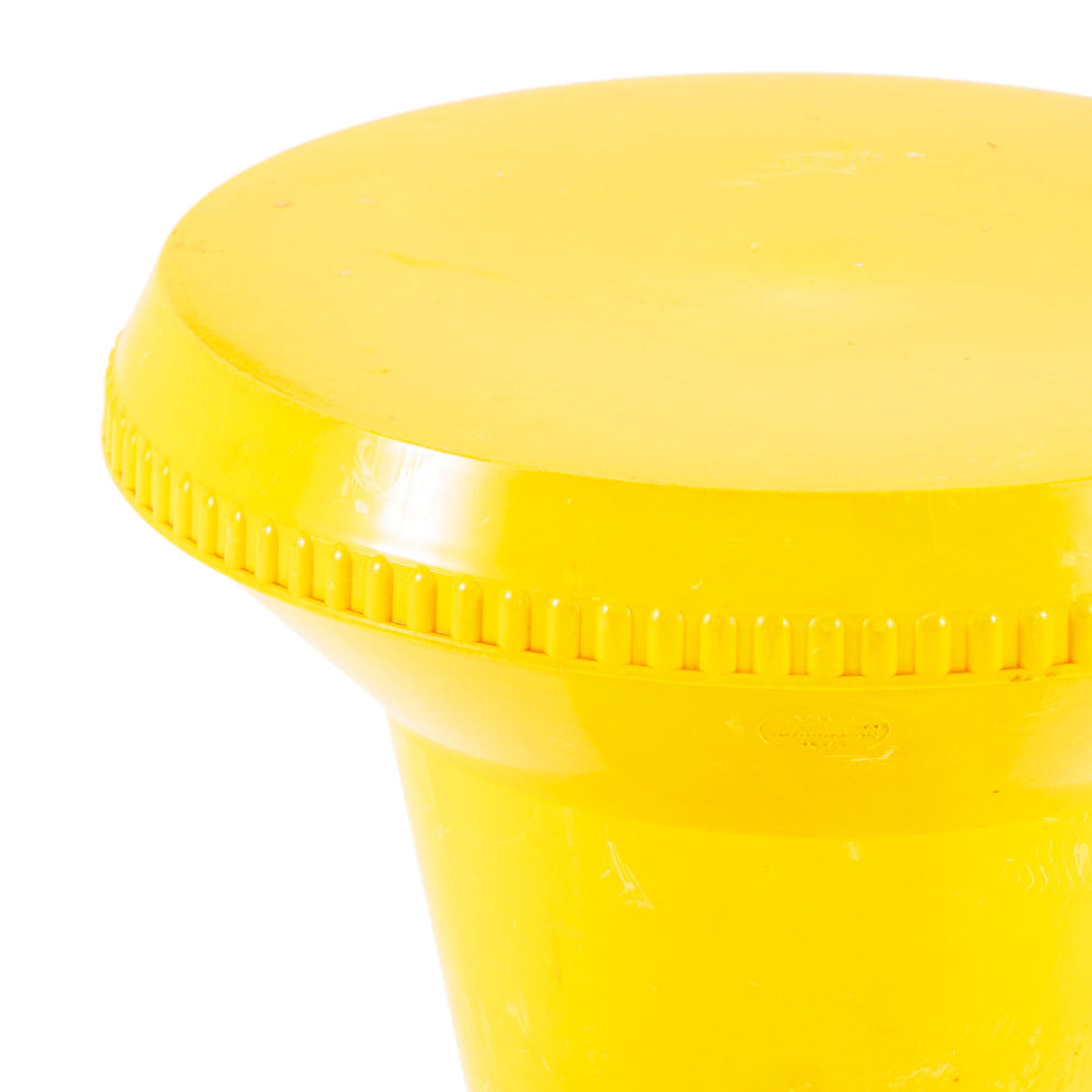 Details: Yellow plastic spool pedestal