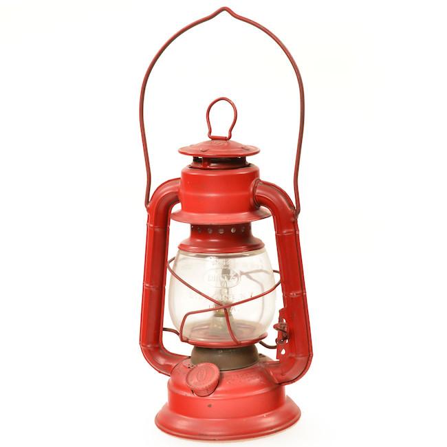 Details: Red Lantern, Camping, Glass, Handle, Metal