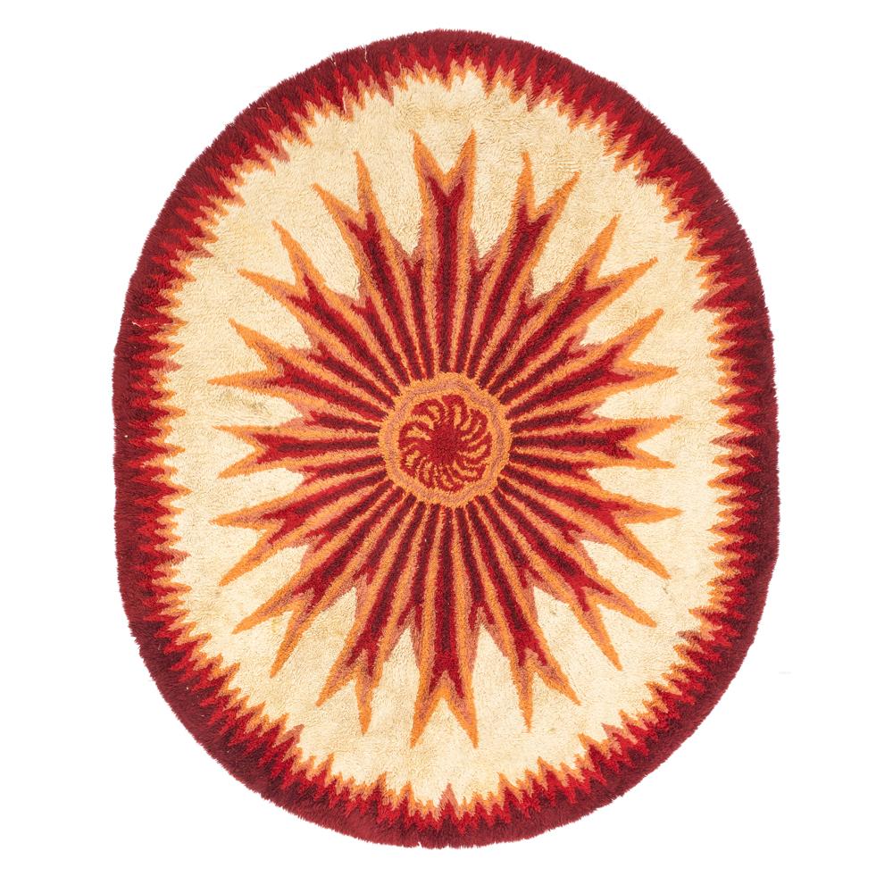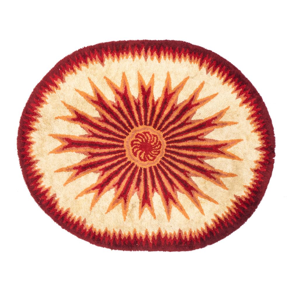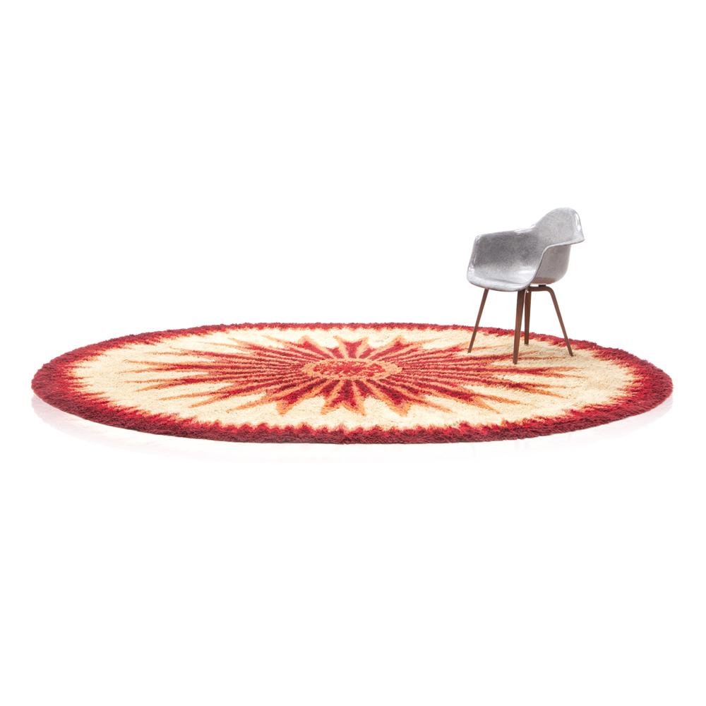 Details: Round rug with red sun