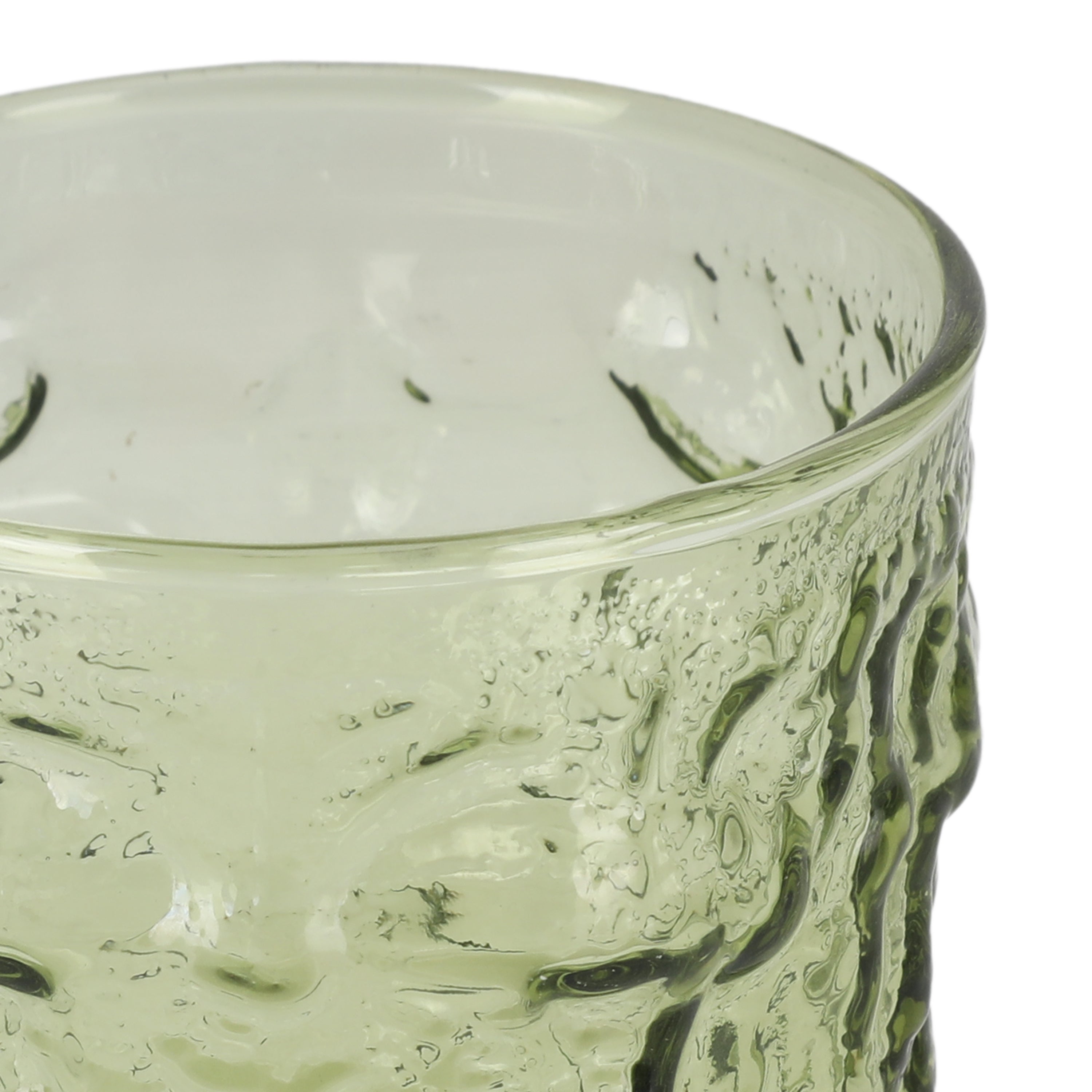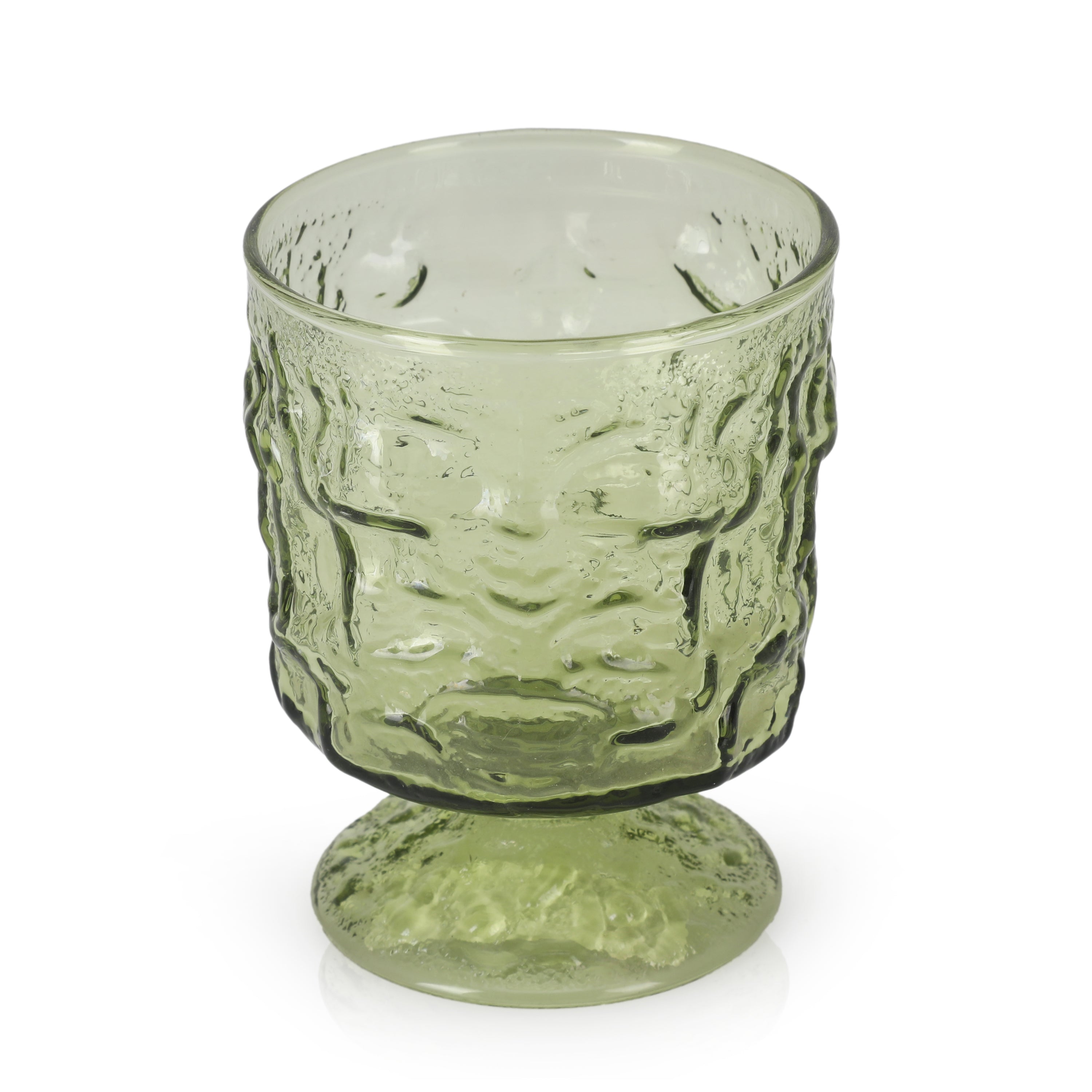 Details: Green glass goblet with textured exterior