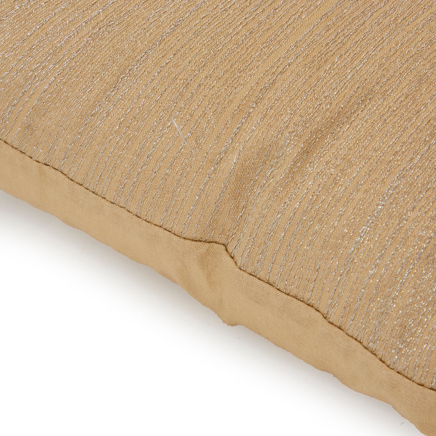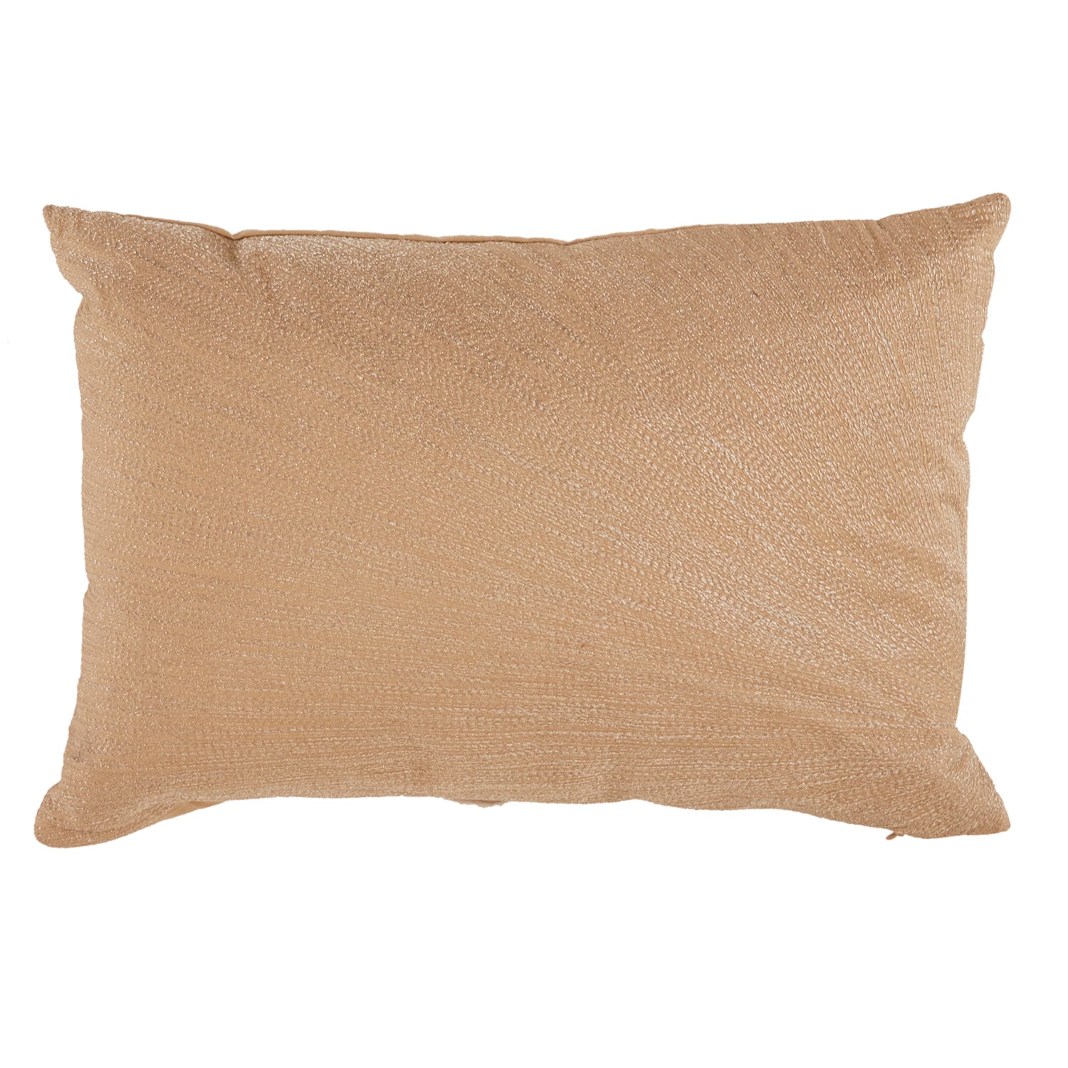 Details: Metallic gold/beige lumbar pillow with silver 'light rays' emanating from top left corner