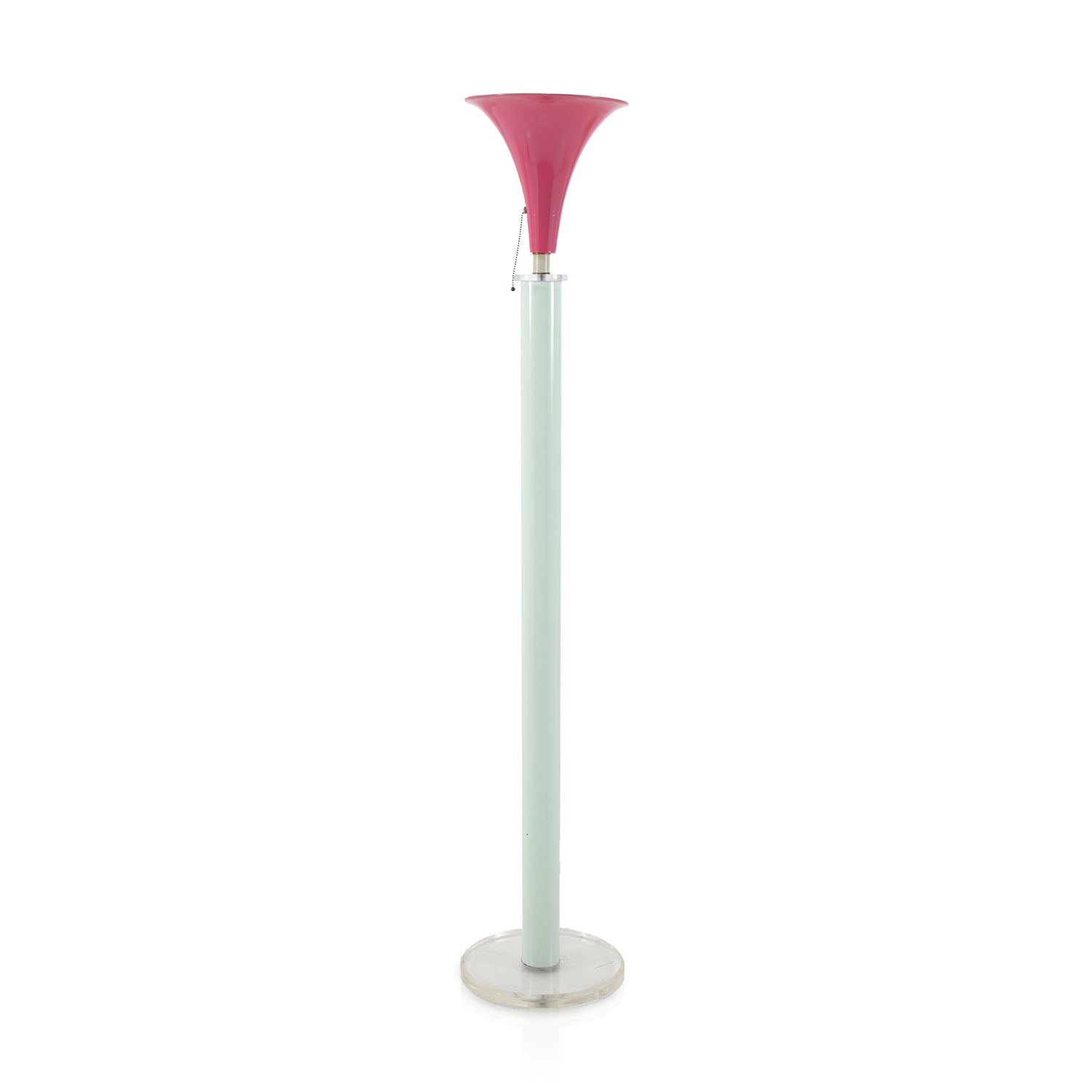 Details: Mint green floor lamp with small magenta shade
