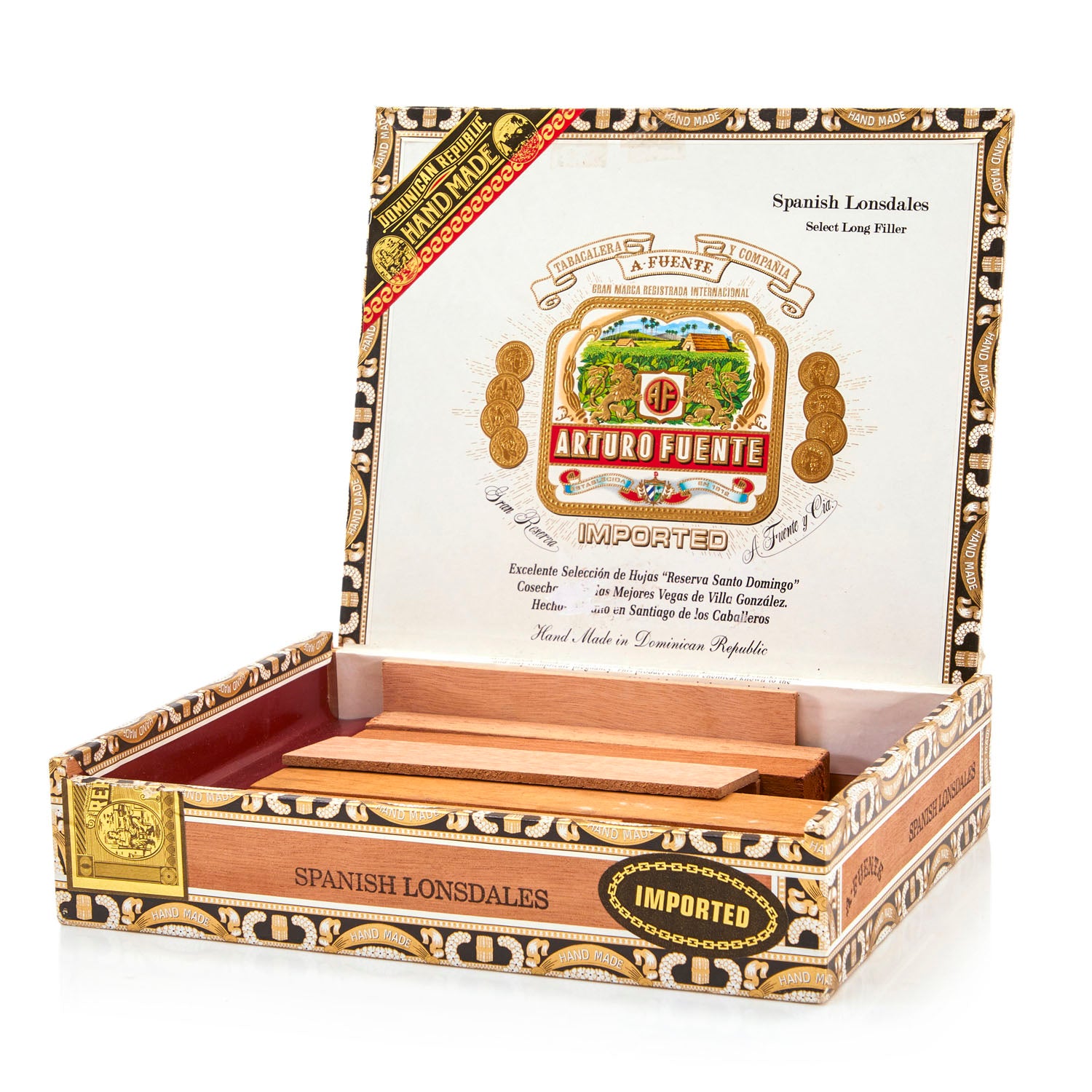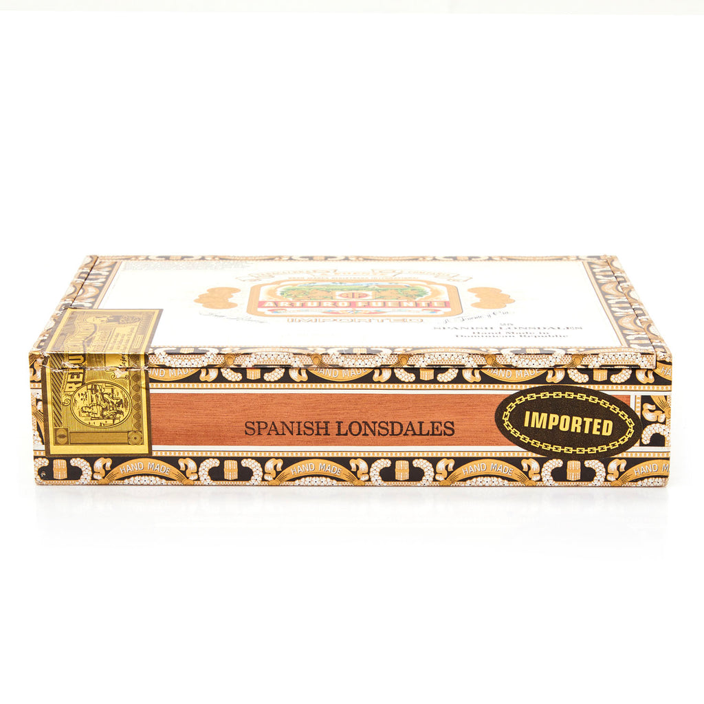 Details: Tan BFA 'Arturo Fuente' Spanish Lonsdales cigar box