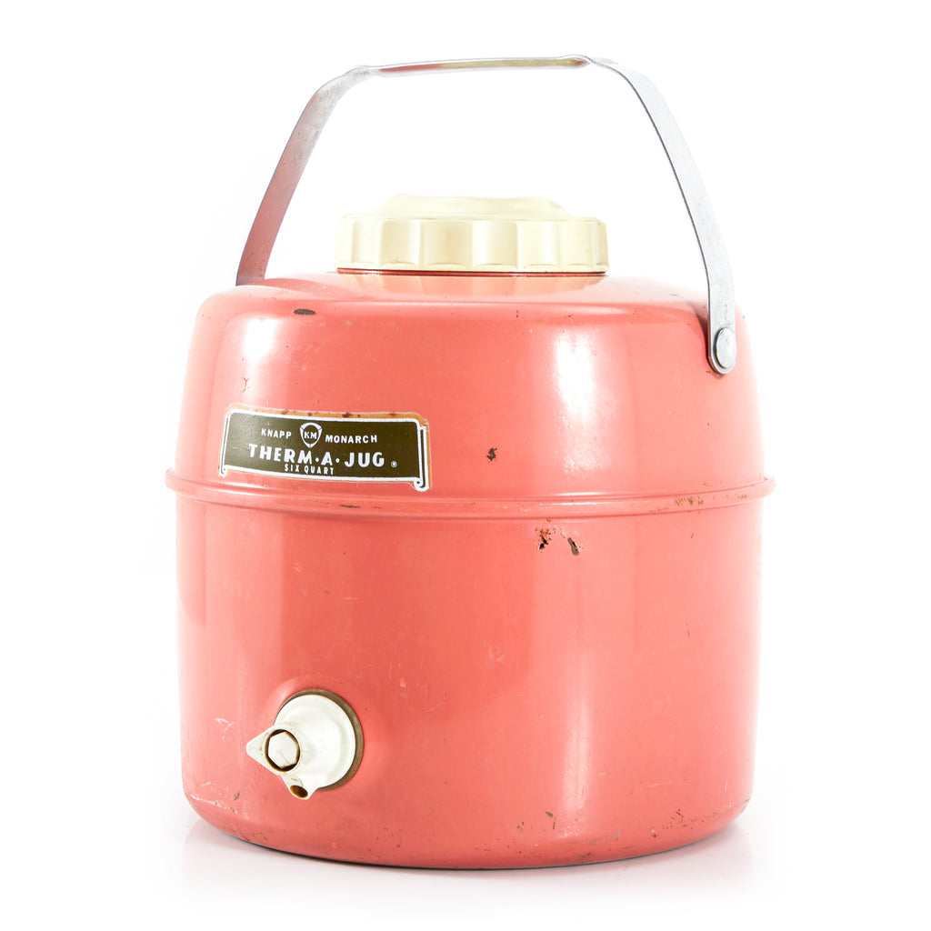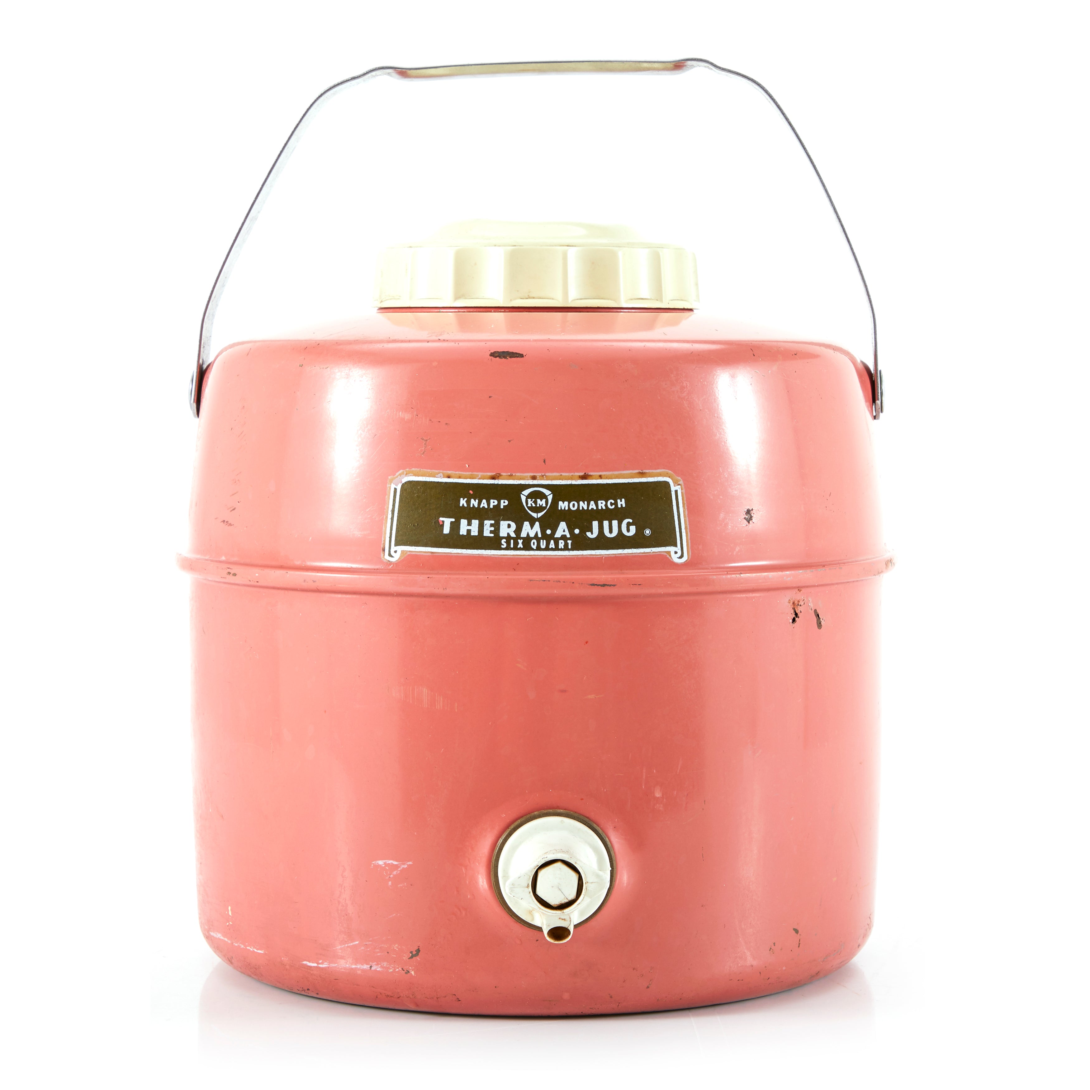 Details: Pink Therma Jug with creme colored twist off top and steel handle