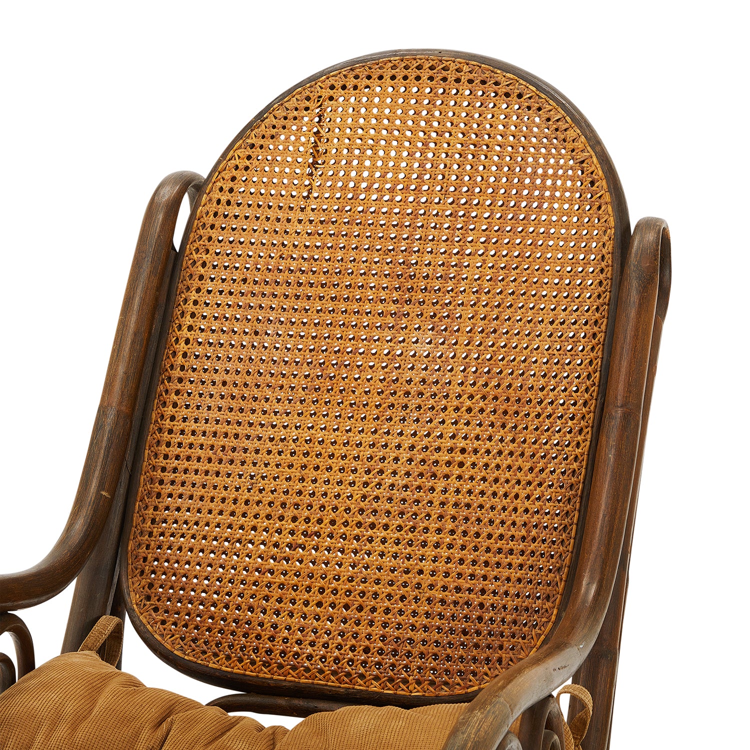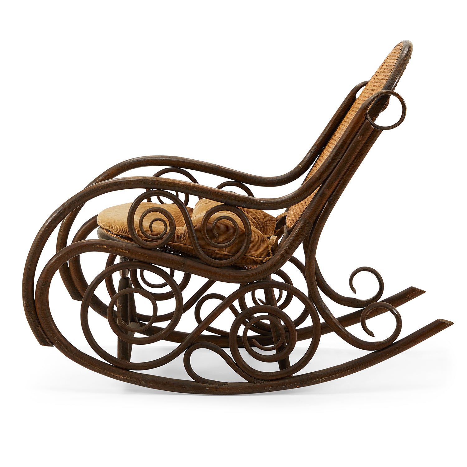 Details: Thonet style Bentwood cane rocking chair with bent wood swirl frame