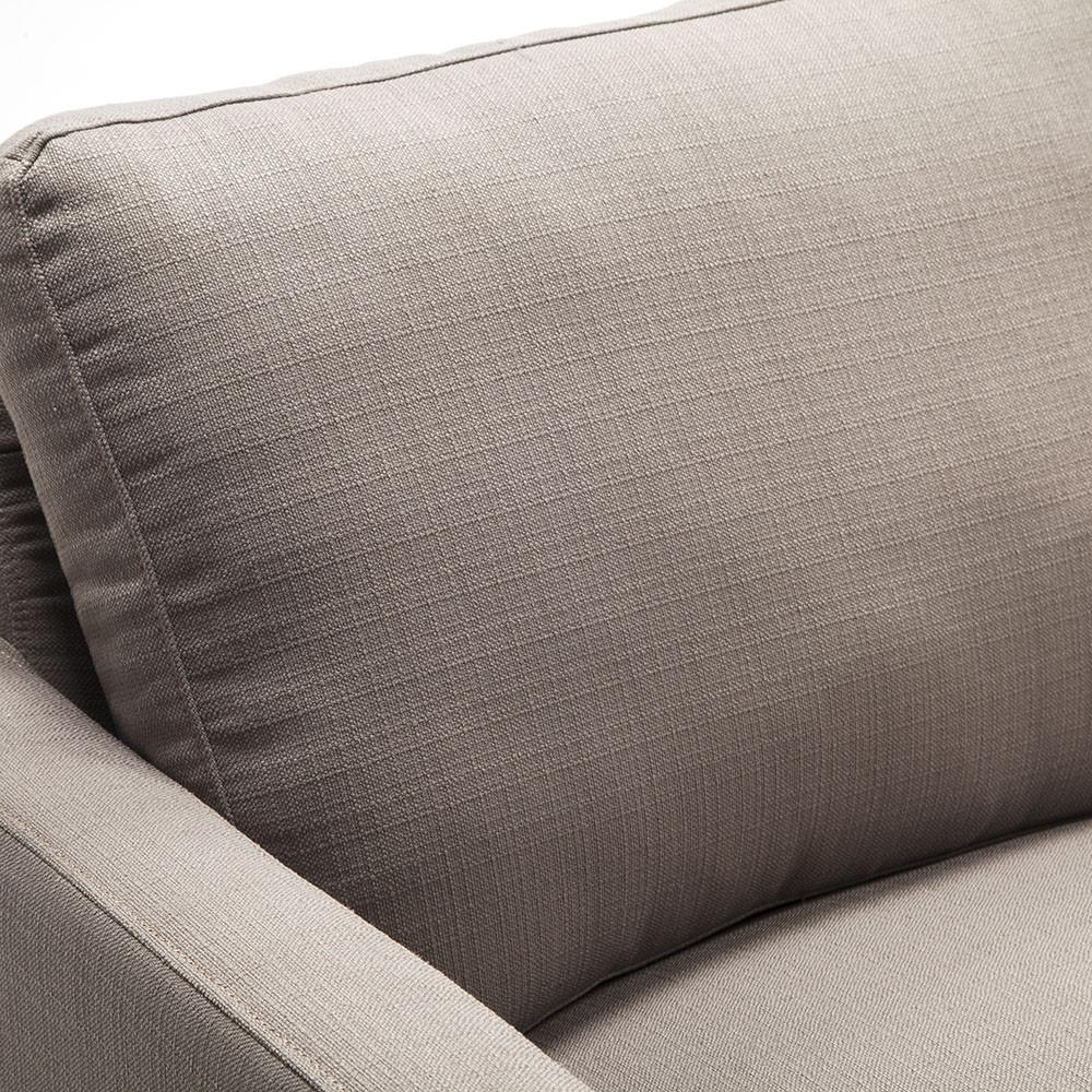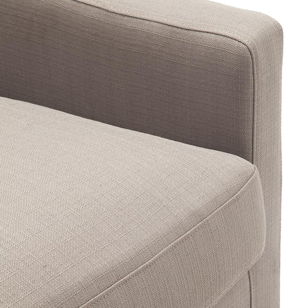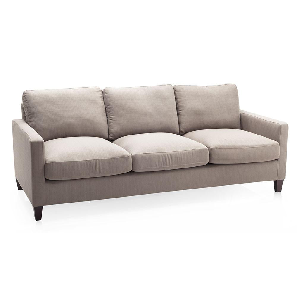 Details: Traditional Taupe Sofa, Dark Wood Block Legs