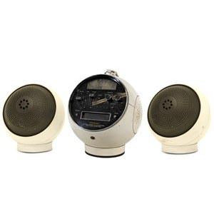 Details: White Round Weltron Stereo with 2 Matching Speakers