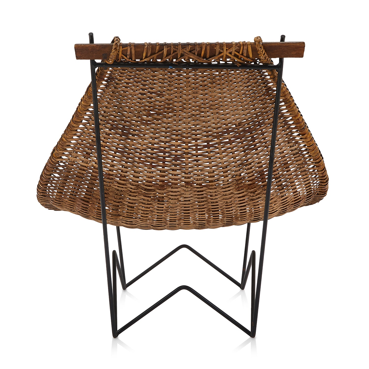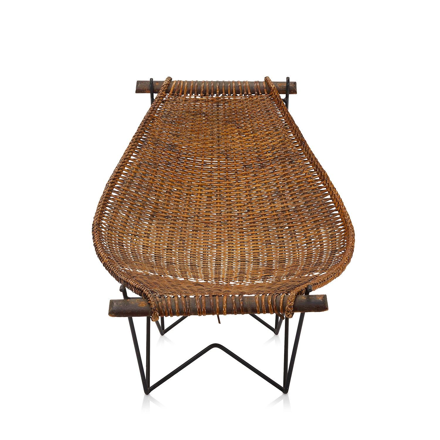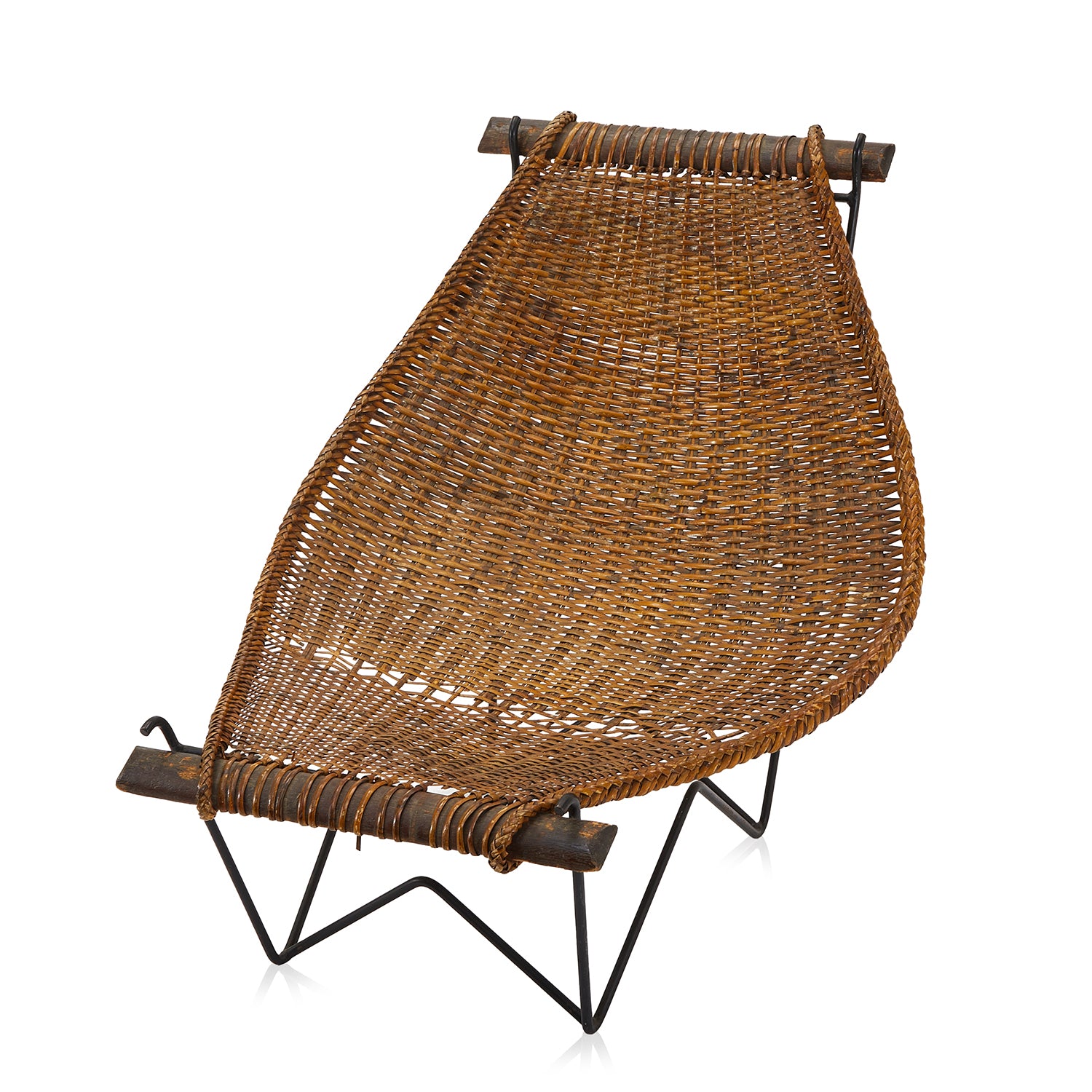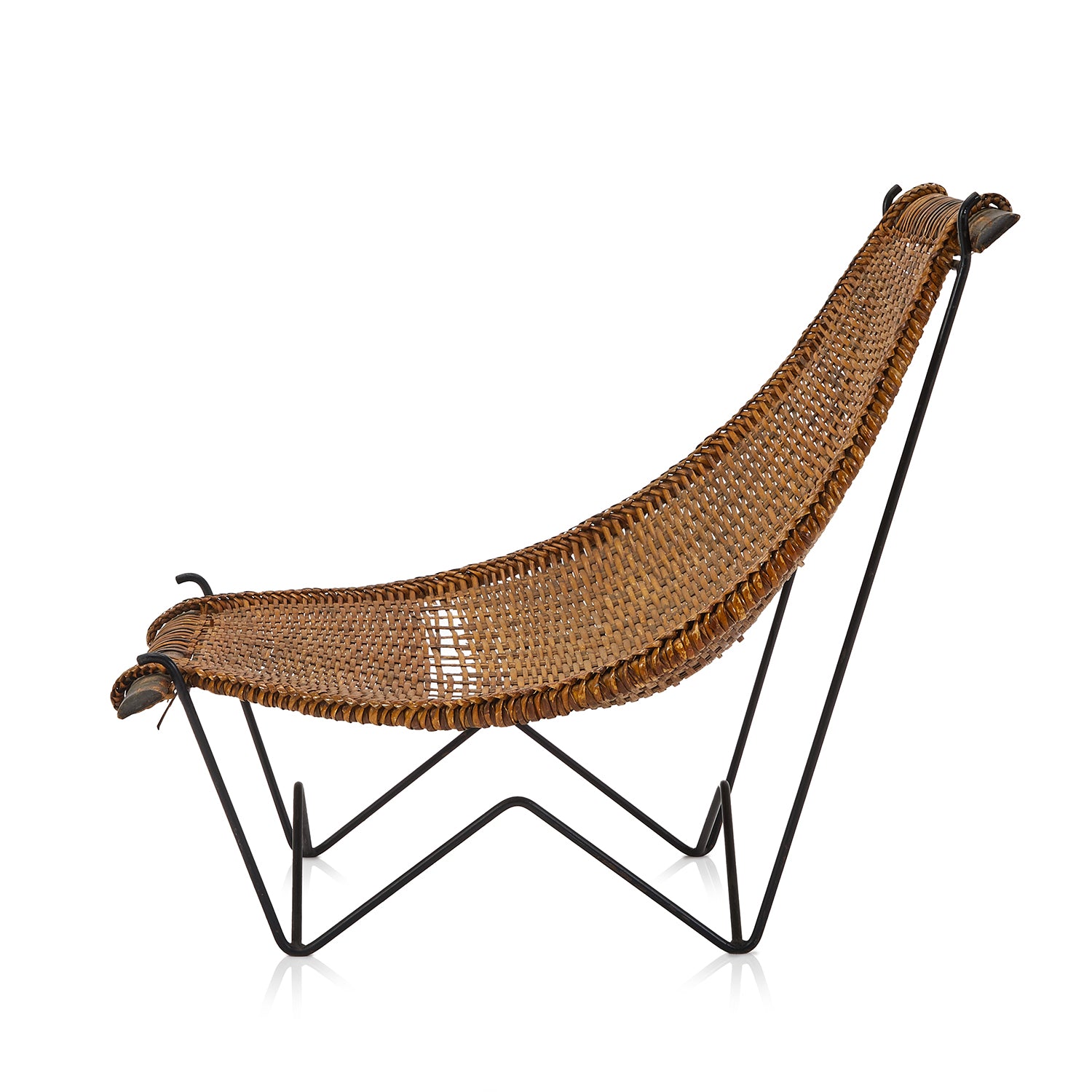Details: 'Duyan' stylle woven rattan lounge sling chair on black steel frame by John Risley