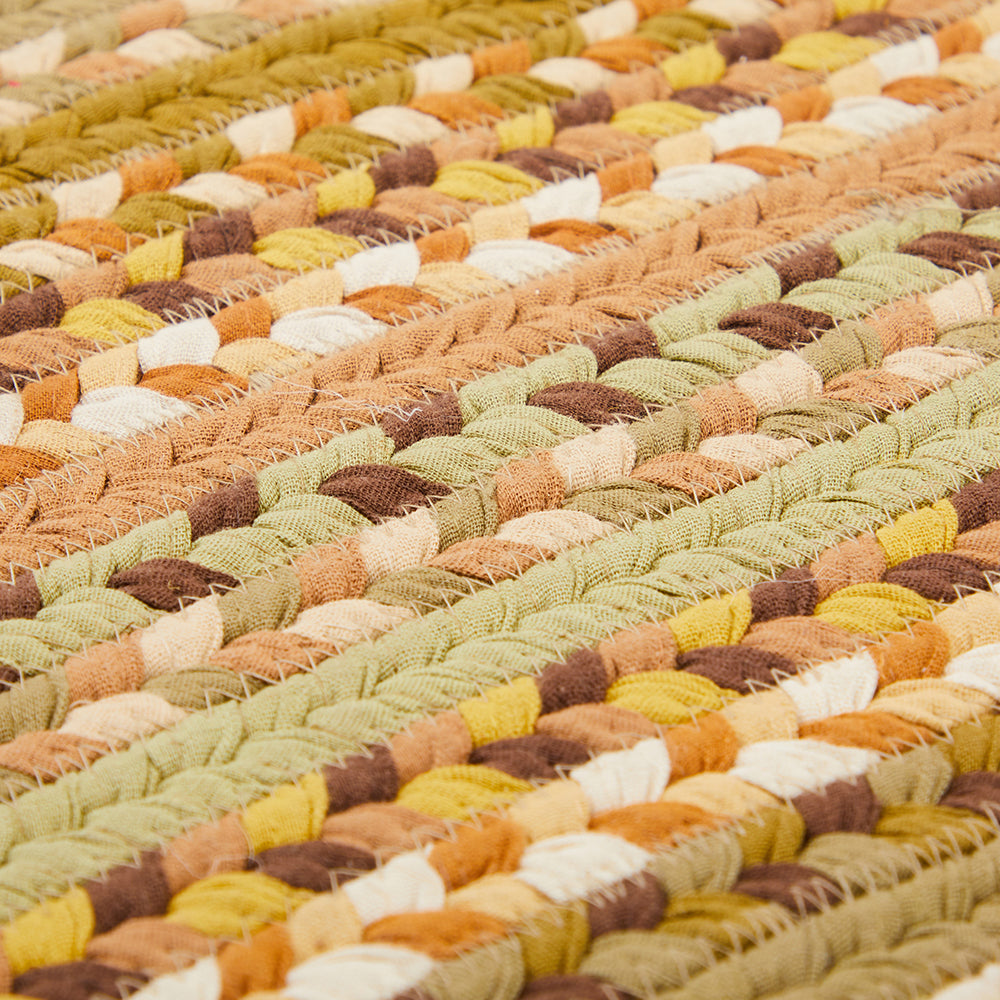 Details: Braided yellow and earth tone rug